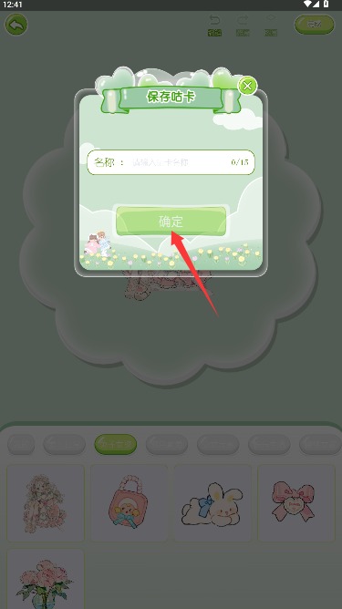 1、点击主界面"创建咕卡"功能按钮,进入个性化装饰卡片的设计制作界面。