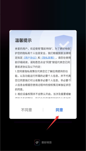 1、首次启动应用时,系统会显示用户协议和隐私政策,阅读后点击同意按钮进入主界面。