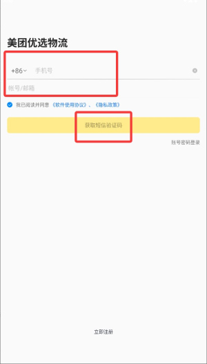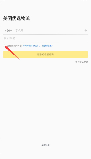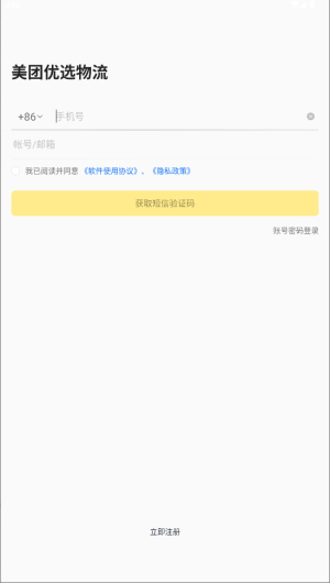 2、初次使用需完成账户登录流程,新用户可选择注册账号选项。