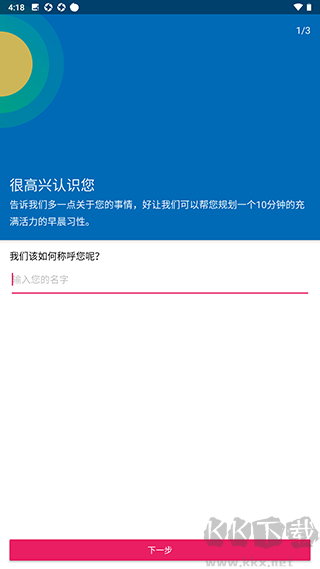 1、下载安装后打开软件,填入自己姓名点击下一步。