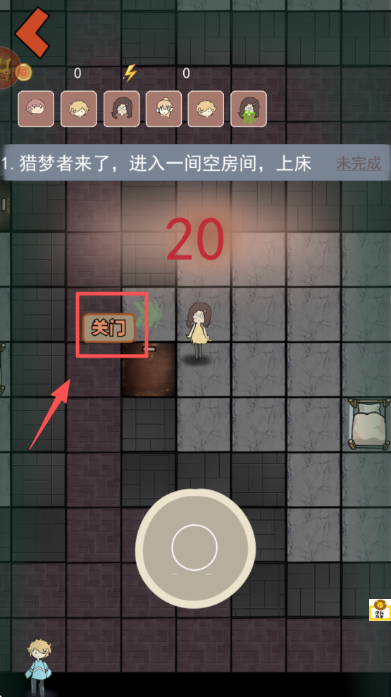 3、然后,在游戏界面点击“关门”按钮,完成关门动作,以避免被猎梦者发现。