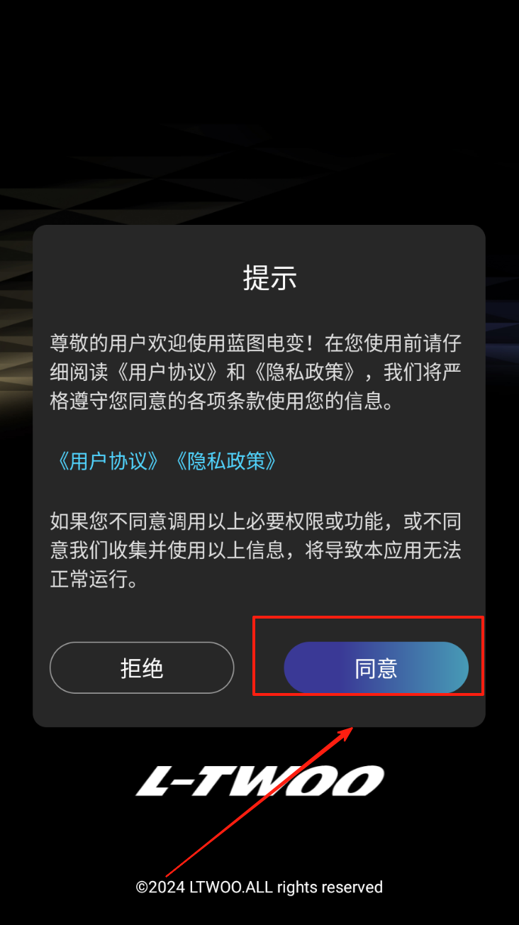 1、仔细阅读《用户协议》和《隐私政策》,点击“同意”以继续。