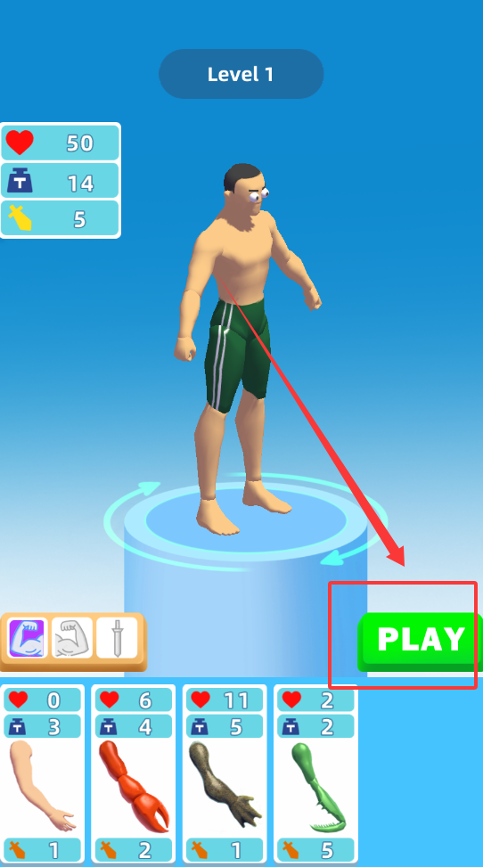 3、在武器系统中选择标枪、狼牙棒或平底锅等不同装备进行更换与自由改造,甚至可以搭配螃蟹、螳螂、青蛙等多种手臂形态来协调左右手攻击。