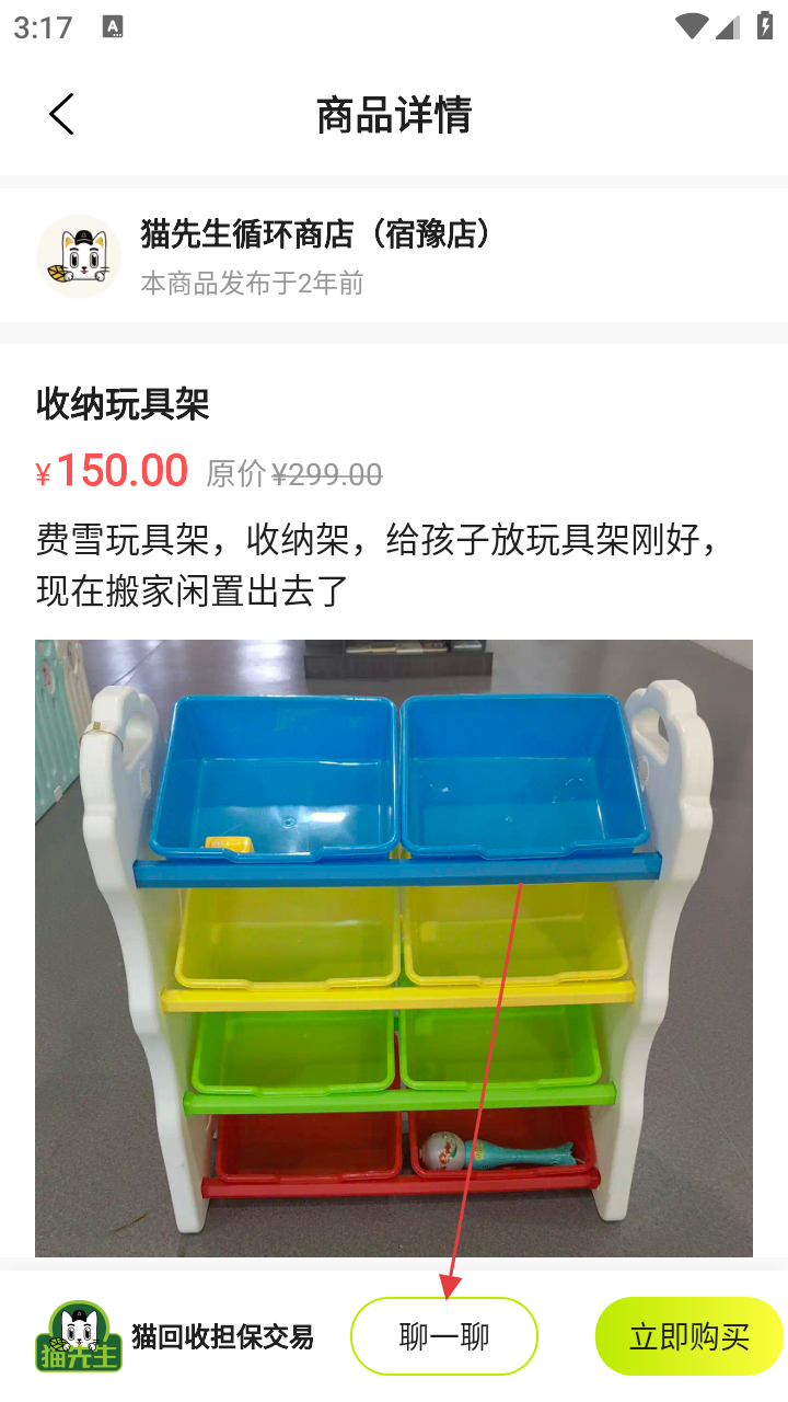 3、查看商品详情时,若想咨询,点击【聊一聊】,可与商家沟通商品成色、维修等信息。