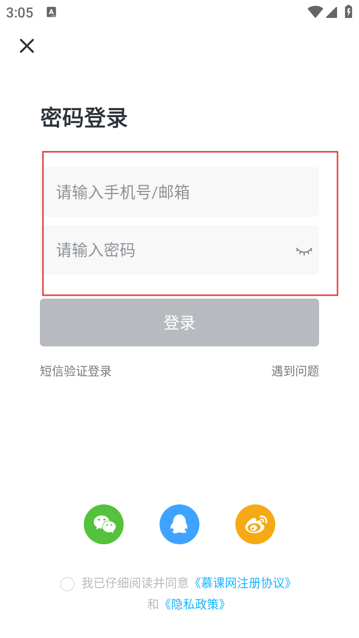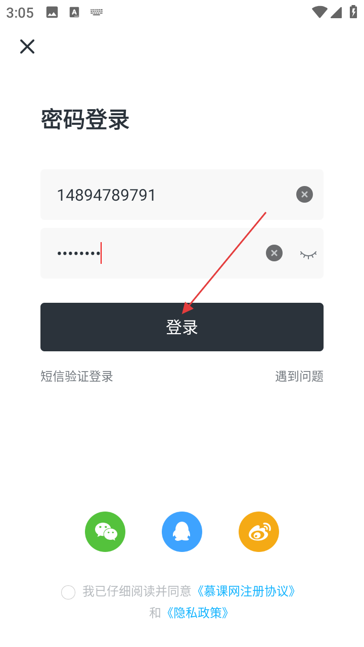 4、勾选同意《慕课网注册协议》和《隐私政策》后,点击【登录】完成账号登录,即可使用慕课网APP功能。