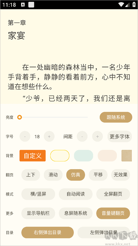 3、【阅读设置】 可自定义字体大小、背景颜色,打造专属阅读环境。
