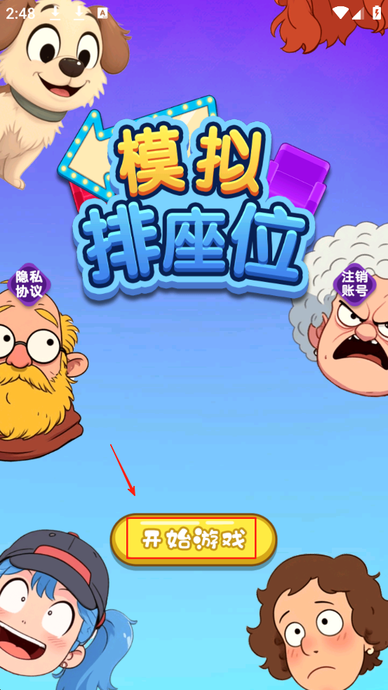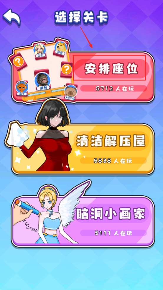 2、在“选择关卡”界面,点击“安排座位”开始游戏。