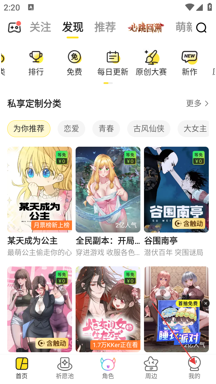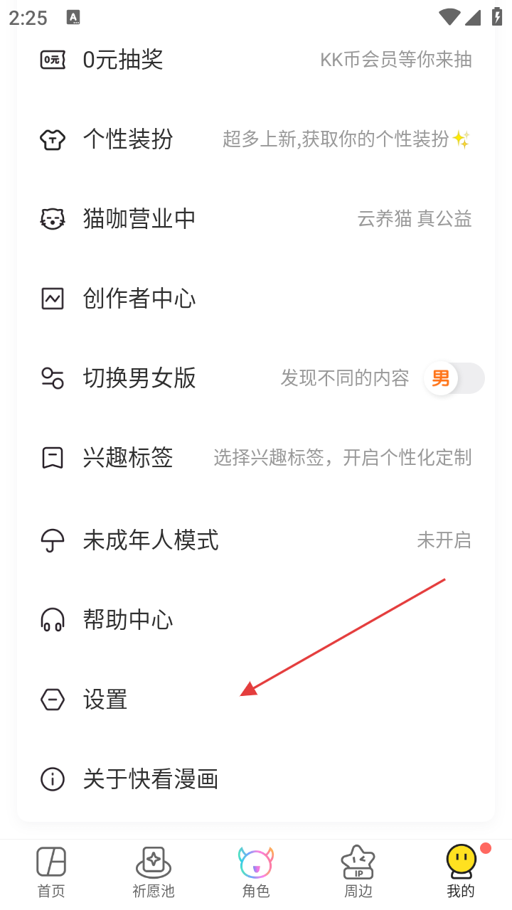1、在快看漫画首页,可浏览推荐漫画,点击右下角【我的】,进入个人相关页面。