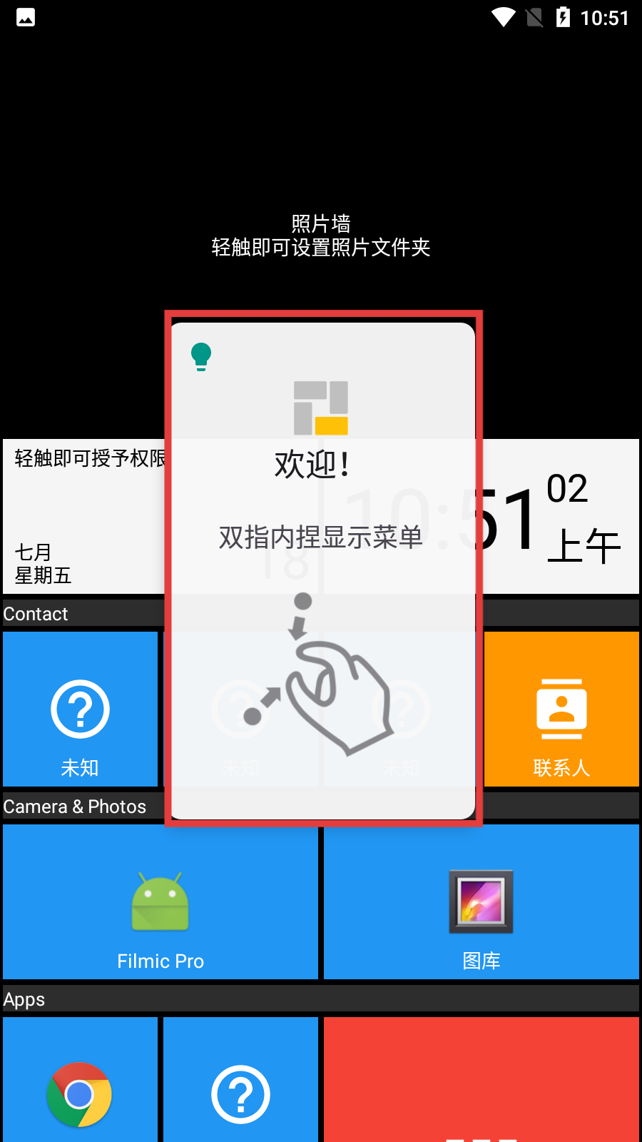 2、在桌面界面,按提示双指内捏,调出菜单,进行个性化操作。