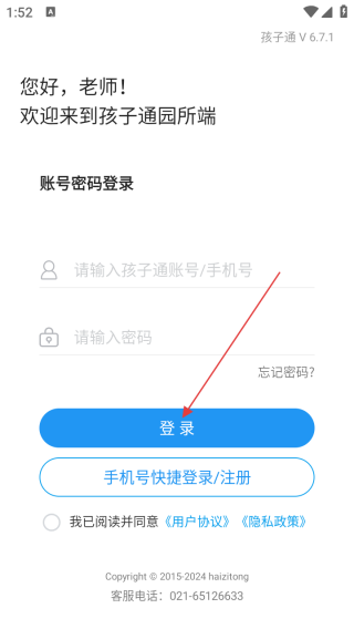 2、在【账号密码登录】界面,于对应输入框填入【孩子通账号/手机号】及密码。