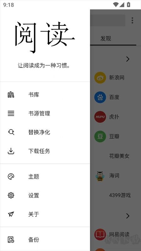 1、进入软件,我们点击左上角的三横杠,然后便可以进入到相应的功能界面,在这里汇聚了书库、书源管理等一系列功能板块。