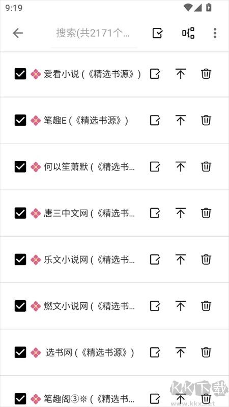 3、在书源界面下,我们能够看到非常丰富的小说源,我们可以自由删除或者增加。