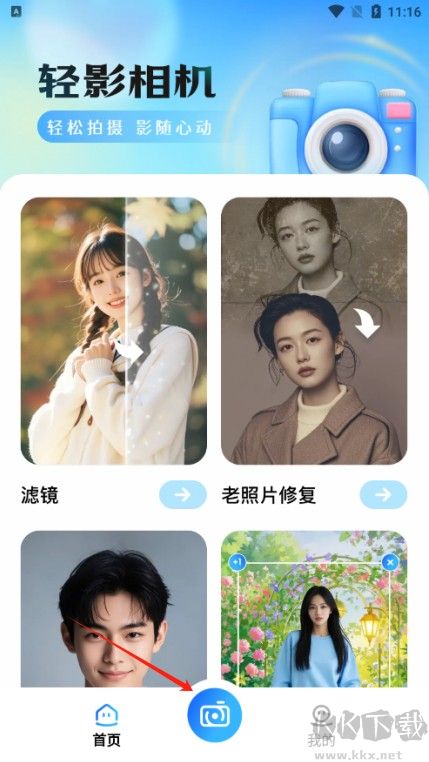 1、下载并启动轻影相机APP,即可随时开启拍照与修图功能;