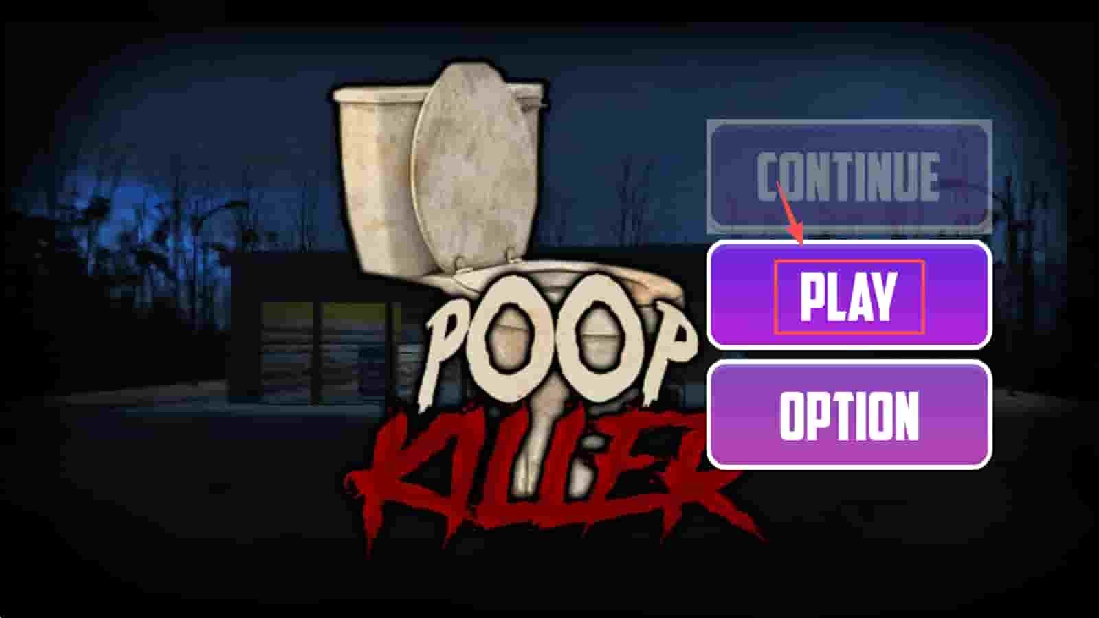 1、开始游戏,点击“PLAY”按钮,开始游戏,进入恐怖的厕所逃脱之旅。