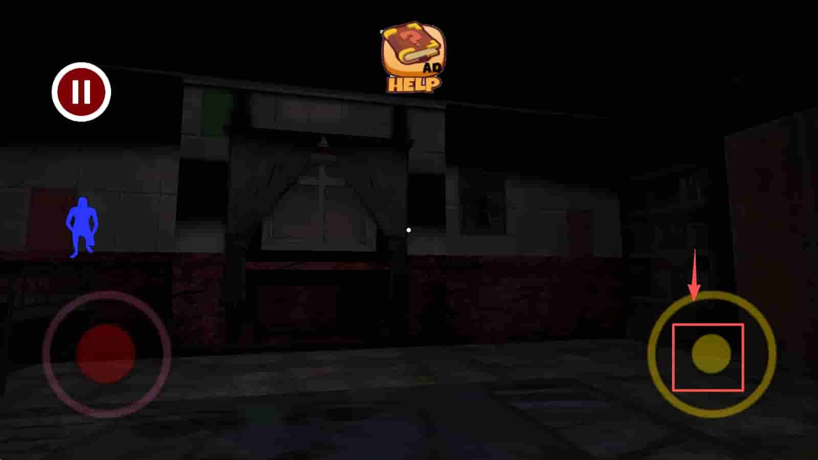 2、移动角色,使用左侧虚拟摇杆移动角色,探索黑暗的厕所环境。
