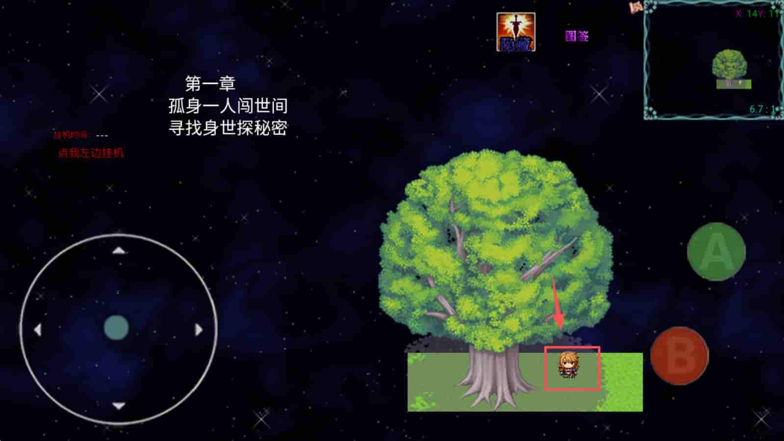 2、探索游戏世界,在游戏地图上移动角色,点击树木等物体,寻找隐藏的宝藏。