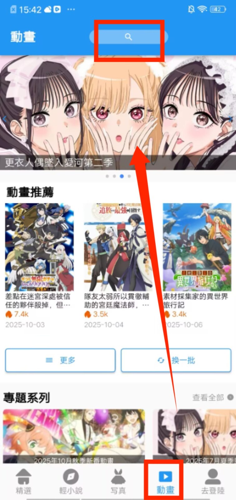 3、想找动画的话,点击底部 “动画”,顶部搜索栏可搜索动画,也能在动画推荐里找感兴趣的内容。