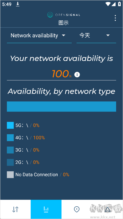 3、Opensignal自动记录你在3G、4G、5G及Wi-Fi网络下的使用时长,甚至包括无信号状态的持续时间。通过可视化时间分布,你能清晰了解自己常处的网络环境,识别信号盲区或弱网区域。