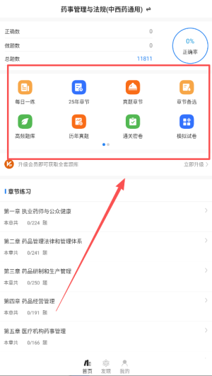 1、首先,下载安装执业药师智题库,打开后即可注册个人账号,进入主界面后,快速查找所需的学习资料和题库。