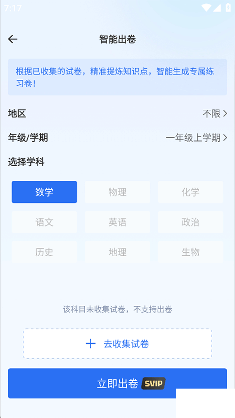 3、挑选对应地区、年级与学期、科目等,点击马上组卷(此服务需开通高级会员)。