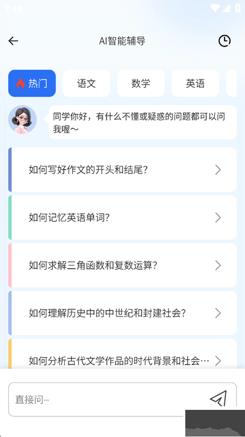 4、遇到学业疑问可在AI辅导页面向指定AI辅导教师提出。