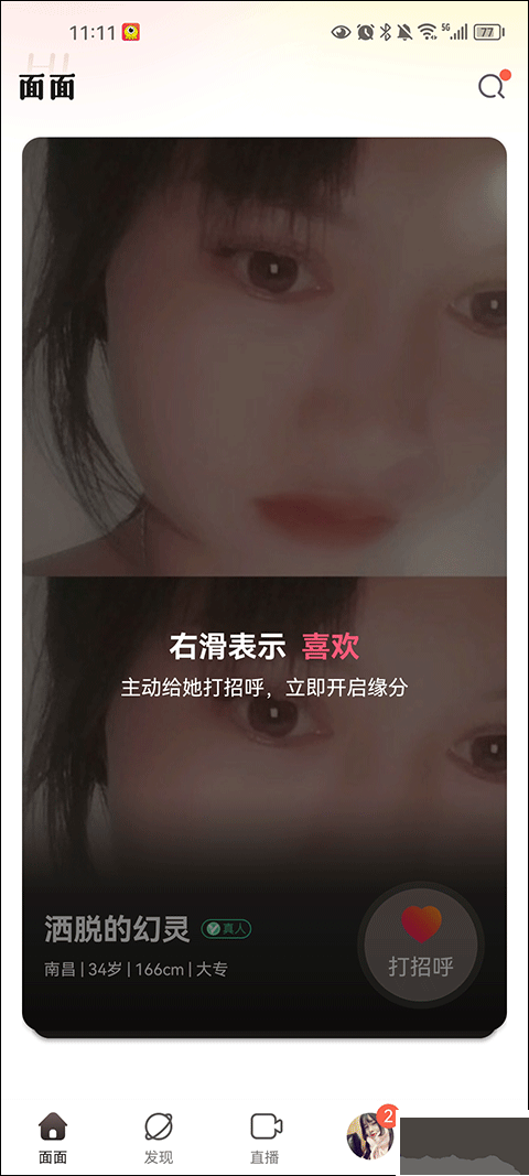 1、可以通过右滑对异性表示喜欢,还可以跟异性打招呼。