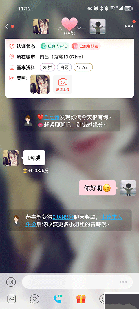 4、在聊天的时候,还能有几率获得积分奖励,并且上传本人头像后将收获更多小姐姐的青睐哦。
