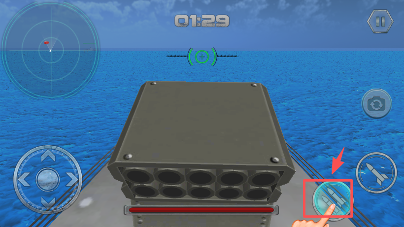 1、在航母驱逐舰作战对局界面,点击右侧对应的武器按钮,发射武器对敌方目标发起攻击行动。