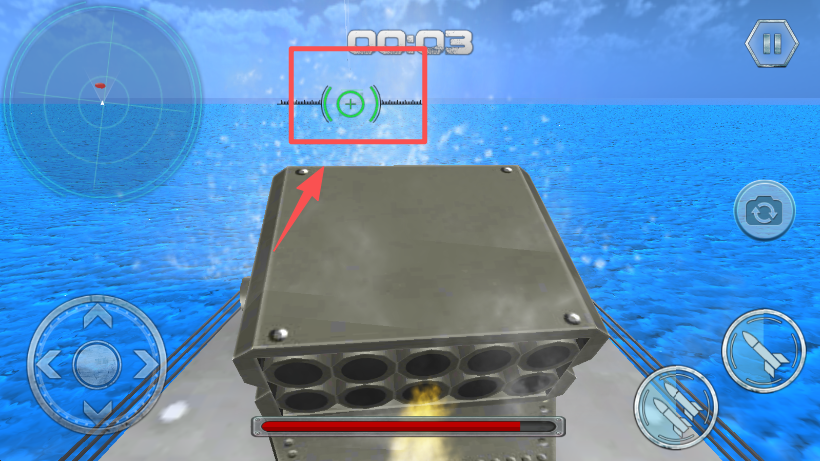 2、操作界面左下角的方向控制按钮,调整武器的瞄准角度,精准对准敌方目标以便打击。