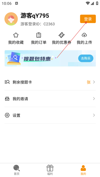 2、在个人中心页面,点击右上角的【登录】按钮,进入登录方式选择界面。