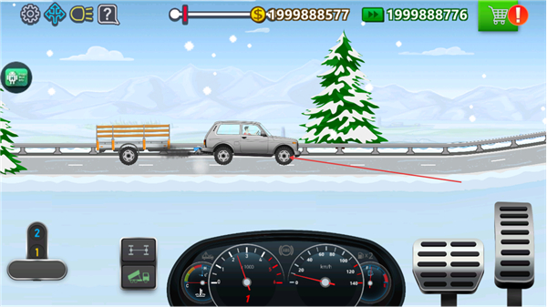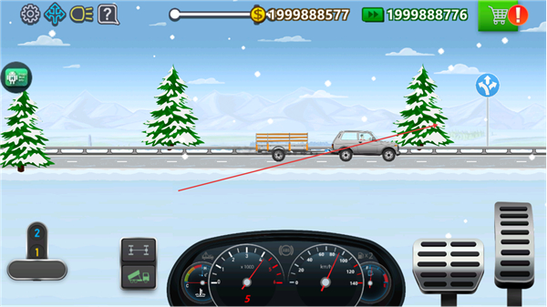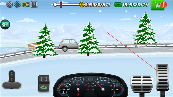1、操控卡车在雪地道路行驶,通过油门、刹车控制车速,跟随前车保持安全距离。