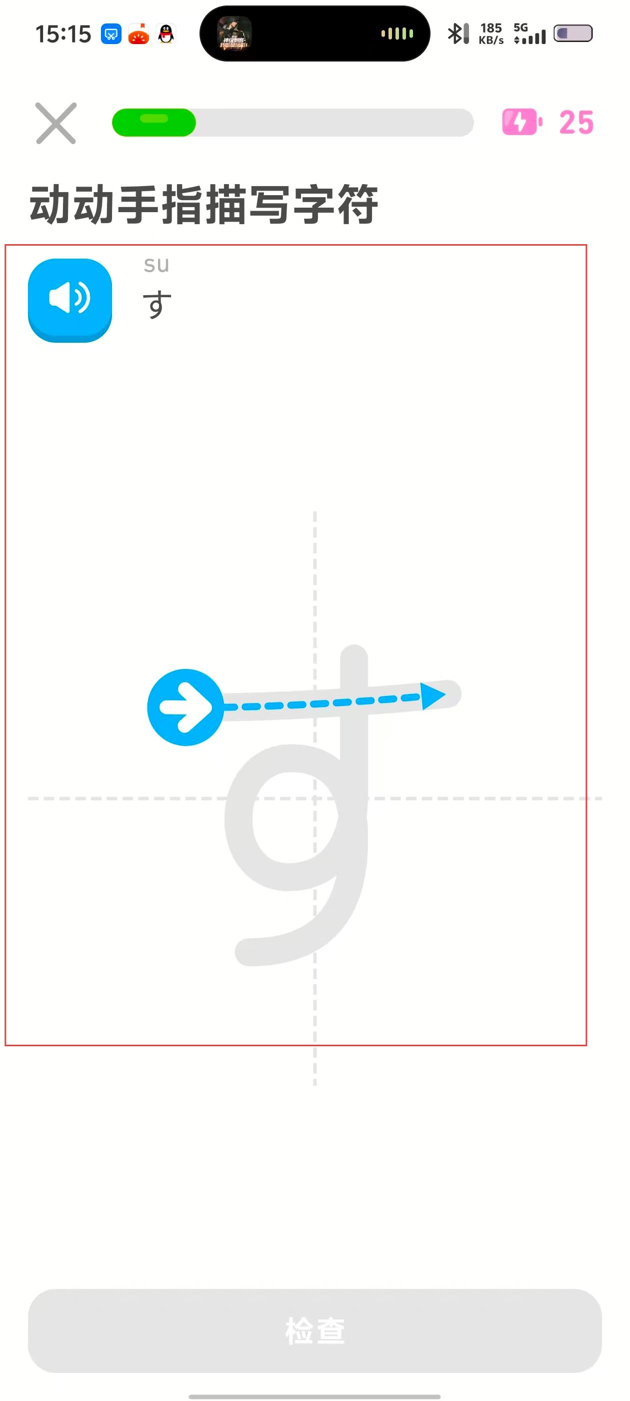 4、进入练习页面,按照提示动动手指描写字符,完成平假名书写练习。