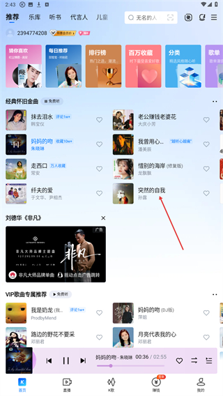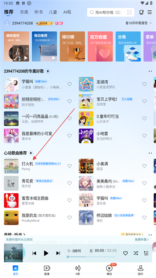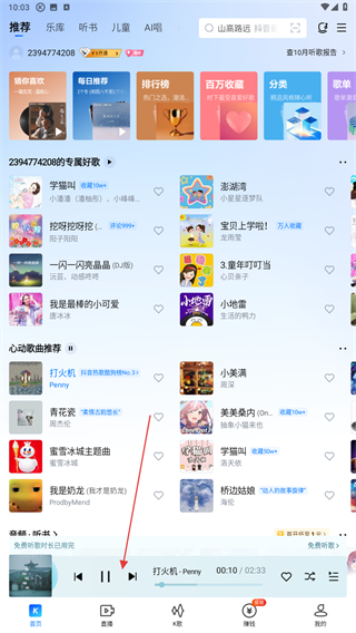 1、打开酷狗的应用App,在推荐首页选择目标歌曲点击即可。
