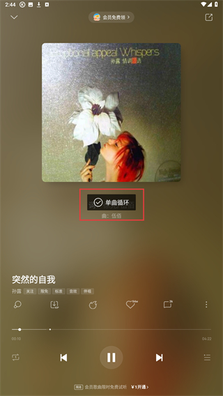 3、点击按钮,直至界面显示单曲循环的提示,即可成功。