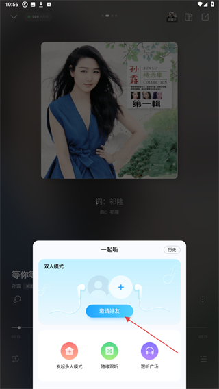 4、在一起听界面中,点击邀请好友按钮,通过对应社交渠道分享邀请。