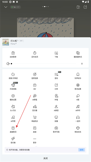 4、在下方,找到并点击桌面歌词的按钮即可。