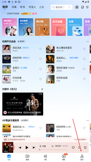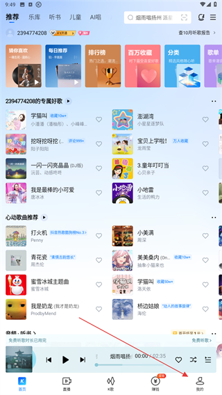 1、启动酷狗App,进入时点击底部我的按钮,进入到个人主页内。