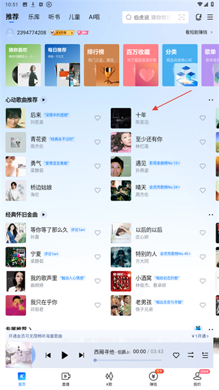 1、在酷狗首页的推荐列表中,点击想要播放的歌曲。