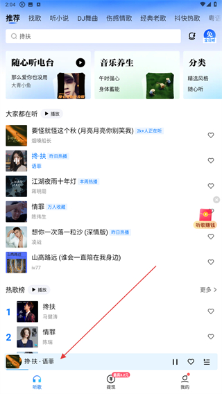 1、打开酷狗的APP,进入首页点击下方播放栏。