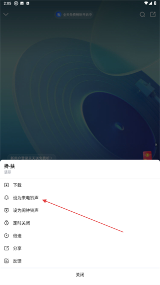 3、在下方弹出的菜单栏中,点击设为来电铃声即可。