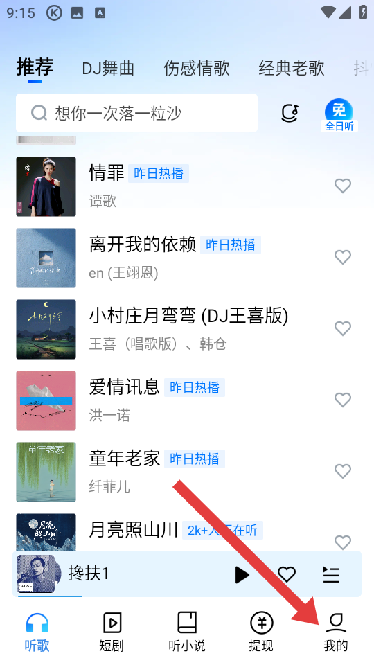 1、打开酷狗APP,在首页底部点击我的按钮。