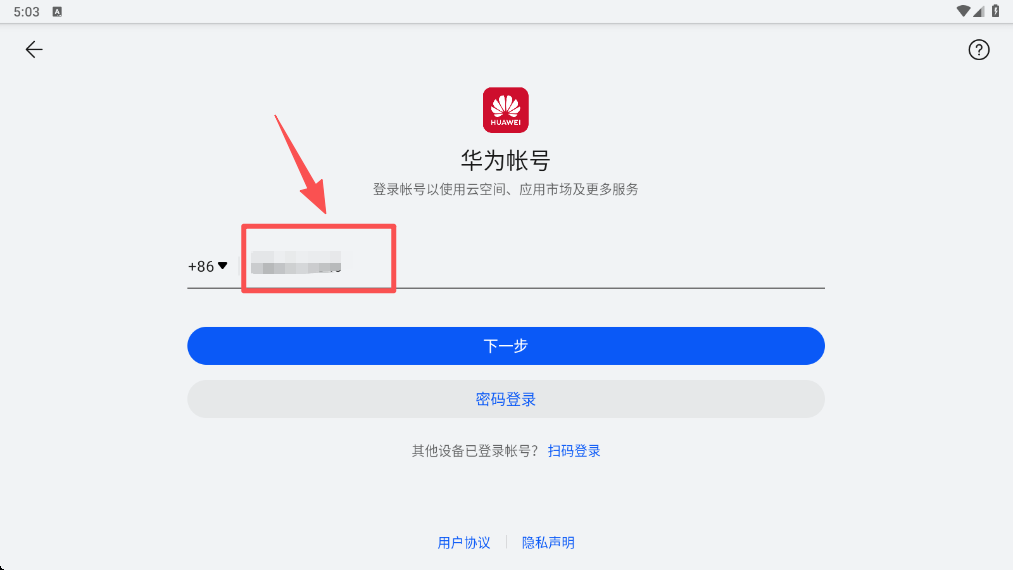 1、在华为账号登录页,先确认输入的手机号准确,再点击 “下一步” 按钮,继续登录流程。