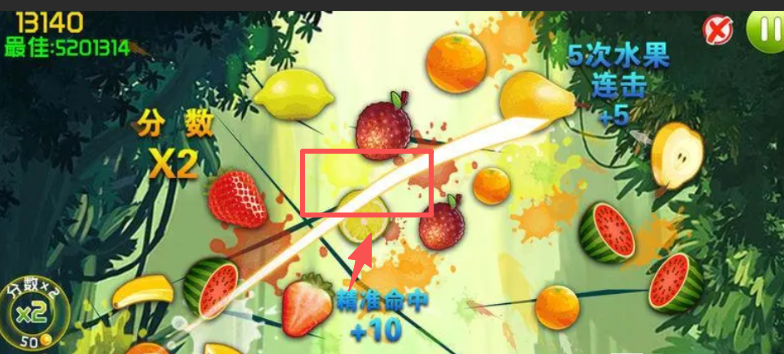 3、追求高分的关键在于“精准”与“连击”。尽可能对单个水果进行多次切割,并形成连续切中不同水果的节奏,可以触发额外的分数加成。