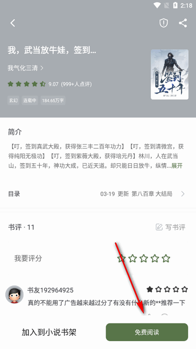 2、点击【免费阅读】。
