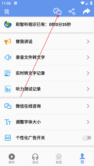 3、在我界面点击微信图标即可一键注册登录。