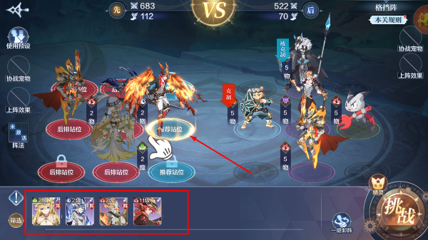 4、阵容布置完毕后,点击右下角【挑战】按钮进入战斗,观察双方战力变化适时调整策略。