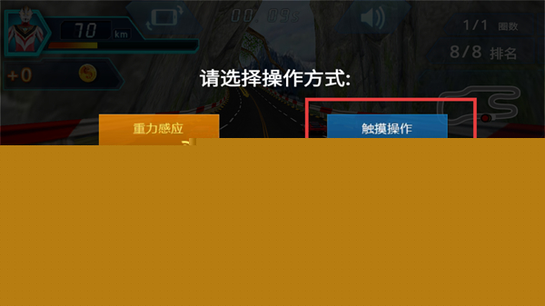 1、在操作选择点击左右屏幕控制车辆方向,开启赛车关卡的操作流程。