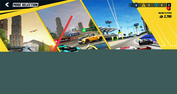 1、在游戏主界面,点击DRIVE NOW按钮,进入模式选择页面,准备开启赛车竞速挑战。