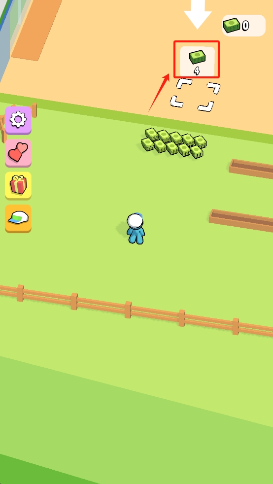 2、进入游戏地图后,长按屏幕移动角色,点击画面右上角的钞票图标,领取钞票。