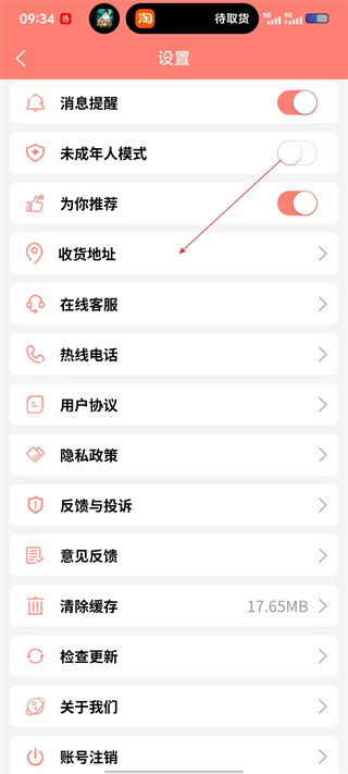 3、在设置界面选择“收货地址”选项,进入管理地址页面,可切换“商城收货地址”“征订收货地址”分类。